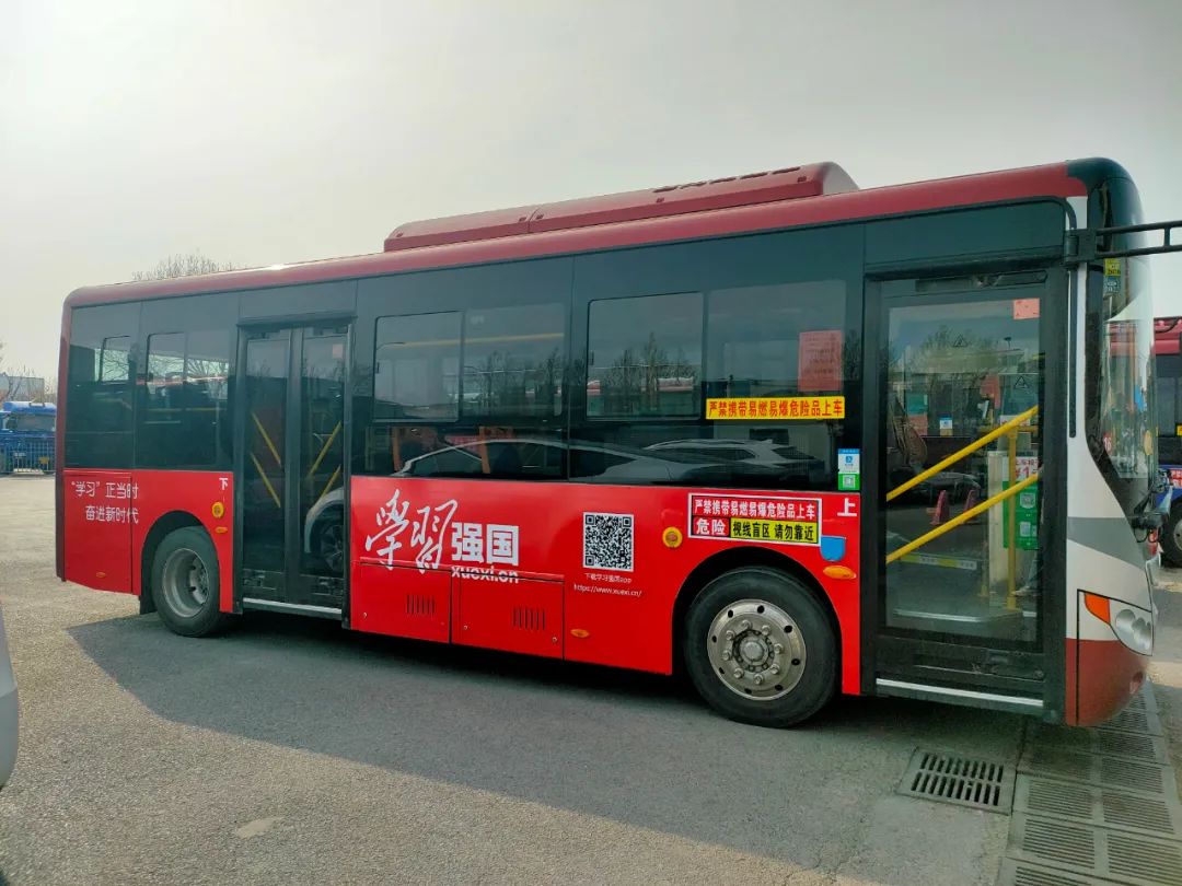 本次活動打造了6輛“學(xué)習(xí)強(qiáng)國”主題公交車,將在611路、612路公交線路投入運(yùn)行。“學(xué)習(xí)強(qiáng)國”主題公交車車身色調(diào)以中國紅為主,簡潔大氣。“學(xué)習(xí)強(qiáng)國”標(biāo)識和“學(xué)習(xí)正當(dāng)時,奮進(jìn)新時代”等學(xué)習(xí)標(biāo)語布置在車身兩側(cè)。走進(jìn)車廂內(nèi)部,從拉手、車廂擋板到宣傳欄,“學(xué)習(xí)強(qiáng)國”標(biāo)識、APP下載二維碼和“今天,你學(xué)習(xí)了嗎”“學(xué)習(xí)強(qiáng)國,有你有我”“讓每天學(xué)習(xí)成為一種習(xí)慣”等學(xué)習(xí)標(biāo)語隨處可見,營造了濃厚的學(xué)習(xí)氛圍。車身尾部也展示了醒目的“學(xué)習(xí)強(qiáng)國”標(biāo)識和APP下載二維碼。乘客掃描二維碼即可下載使用“學(xué)習(xí)強(qiáng)國”學(xué)習(xí)平臺,操作過程方便快捷。