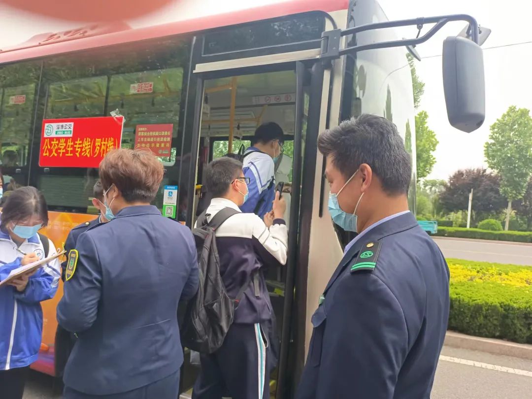 線路開通當(dāng)天,在每輛定制公交車上,淄川分公司都安排了一名引領(lǐng)員、秩序維護(hù)員和現(xiàn)場(chǎng)調(diào)度員。提醒學(xué)生戴好口罩,做好學(xué)生信息核對(duì)、掃碼登記和體溫測(cè)量工作。淄川分公司黨支部黨員突擊隊(duì)成員、青年團(tuán)員身披紅色綬帶,按照分工,提前部署,協(xié)助公交車長(zhǎng)、調(diào)度員做好疏導(dǎo)、引領(lǐng)工作。