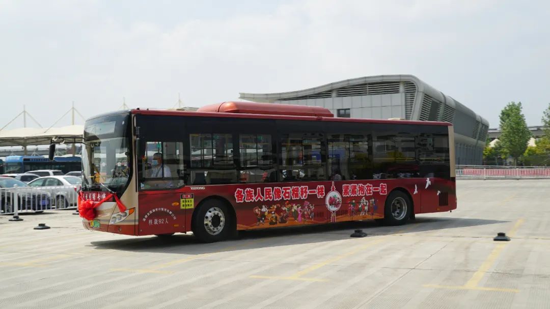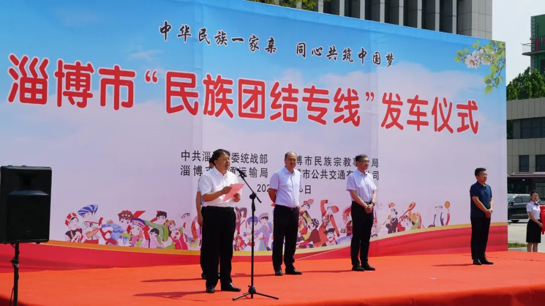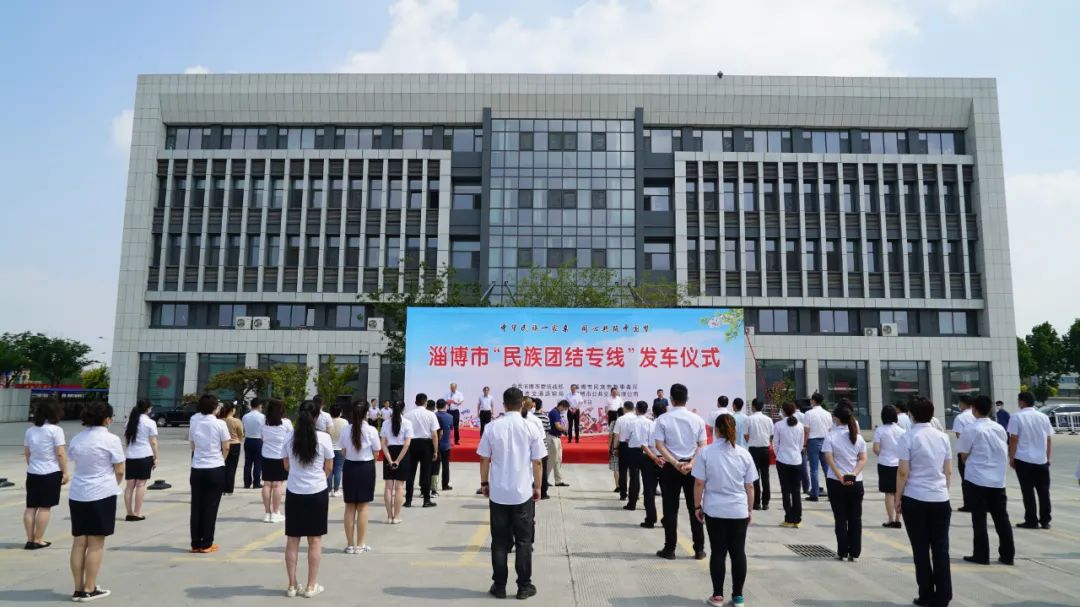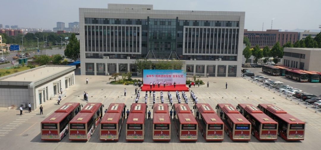 6月6日上午,淄博市“民族團(tuán)結(jié)號(hào)”公交專(zhuān)線發(fā)車(chē)儀式在淄博公交客運(yùn)出租分公司舉行,隨著10輛象征“56個(gè)民族親如一家”的公交車(chē)緩緩駛出,淄博市“民族團(tuán)結(jié)號(hào)”公交專(zhuān)線正式開(kāi)通。
