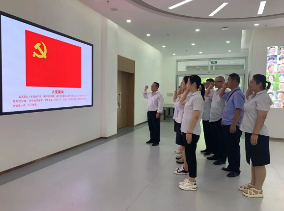 參觀最后,在世紀(jì)花園黨群服務(wù)中心宣教大廳,培訓(xùn)中心全體黨員在黨支部書記的領(lǐng)讀下,重溫入黨誓詞,合唱紅色歌曲。“不忘初心、牢記使命”的莊嚴(yán)承諾深深印在全體黨員的心中,大家的責(zé)任感與使命感變得更加堅(jiān)定。