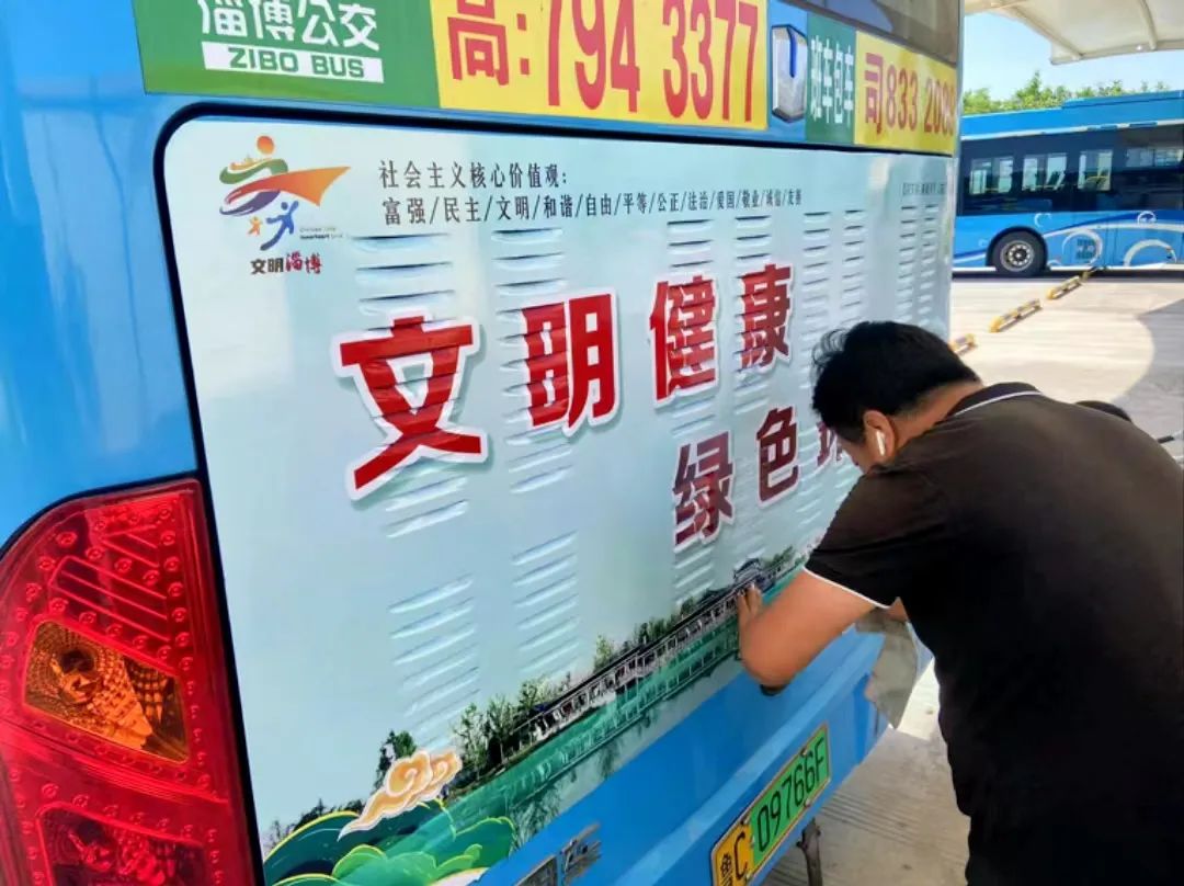 山東正晉公交廣告有限公司在此次文明城市創(chuàng)建中,聞令而動(dòng)、分工明確,全力開展公益廣告張貼工作,全體職工奮戰(zhàn)在各大公交場(chǎng)站,“拉高線”“抓細(xì)節(jié)”讓公益廣告經(jīng)得起細(xì)看、細(xì)品,用辛勤的汗水展示著城市公交的文明風(fēng)采。