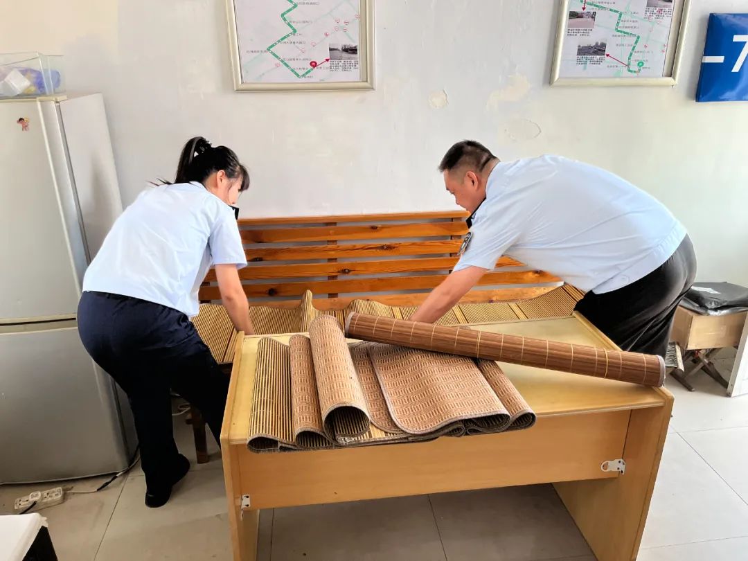 清洗空調濾網保證正常運轉,鋪設涼席營造舒適休息環(huán)境,熬煮綠豆湯為車長降溫防暑……開發(fā)區(qū)分公司將清涼送到了一線員工的休息室。分公司工作人員集體行動,為休息室的長凳鋪上涼席,確保車長們在工作間隙得到有效的休息和放松。