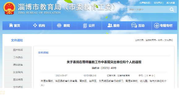9月6日,中共淄博市委教育工作委員會、淄博市教育局發(fā)布通報,對在全市尊師重教工作中表現(xiàn)突出的22個單位和3名個人給予通報表揚。淄博市公共交通有限公司榮獲全市“尊師重教”表現(xiàn)突出單位稱號。