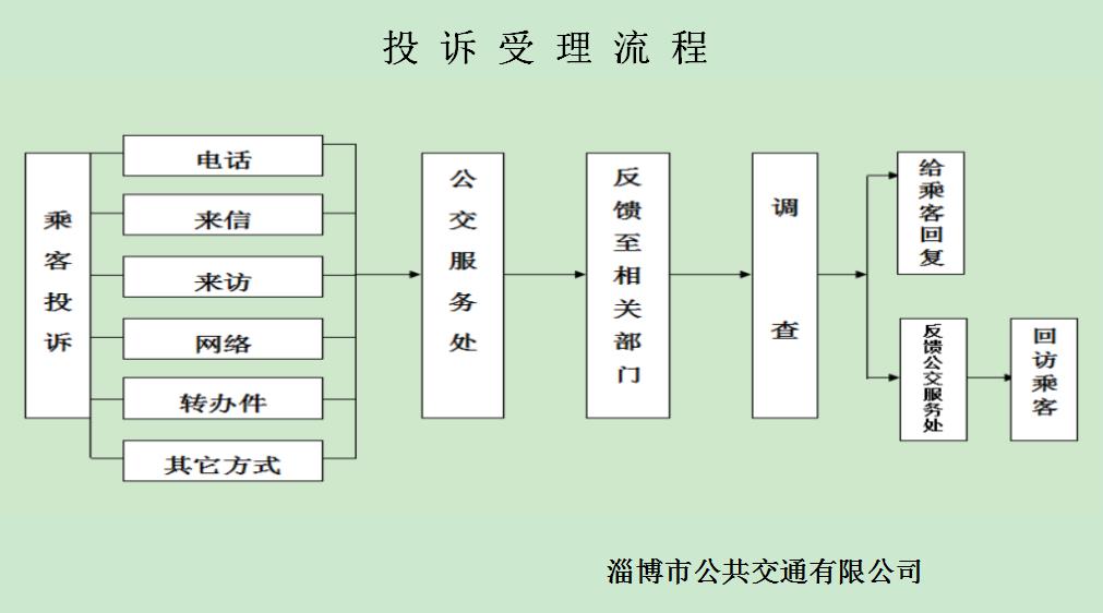3、受理單位接到投訴后當(dāng)日應(yīng)立即將投訴內(nèi)容交經(jīng)辦人處理,7日內(nèi)答復(fù)乘客并回復(fù)公司處理意見,把處理意見用書面材料或通過(guò)網(wǎng)上辦公平臺(tái)報(bào)公司服務(wù)管理部門存檔。
